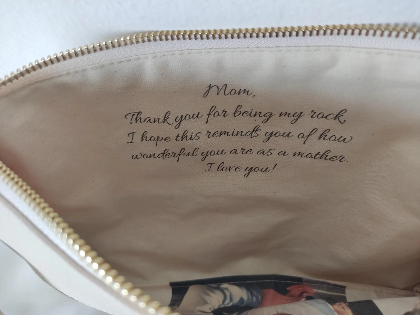 Please send me a custom message and/or a photo for the inside of the bag